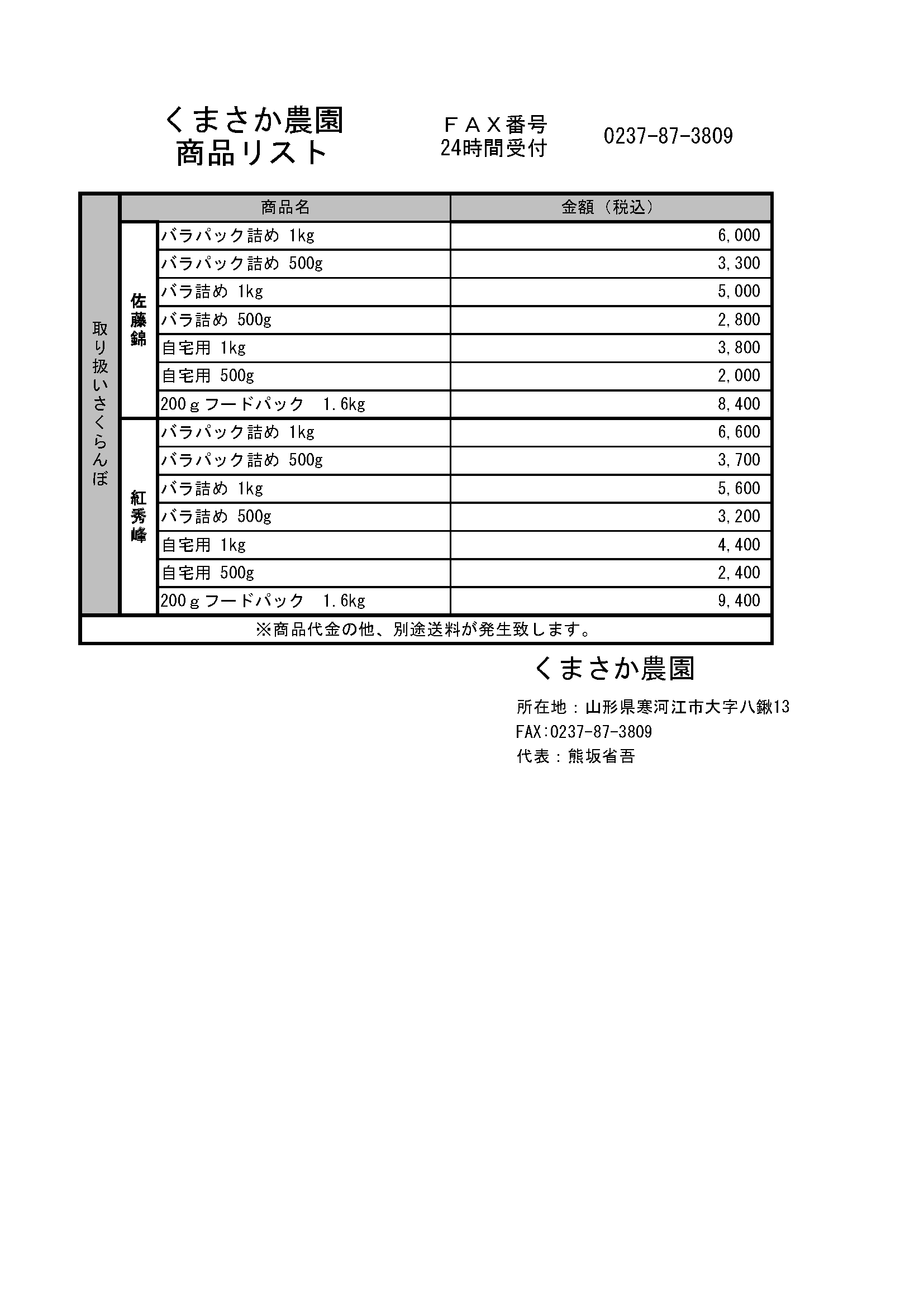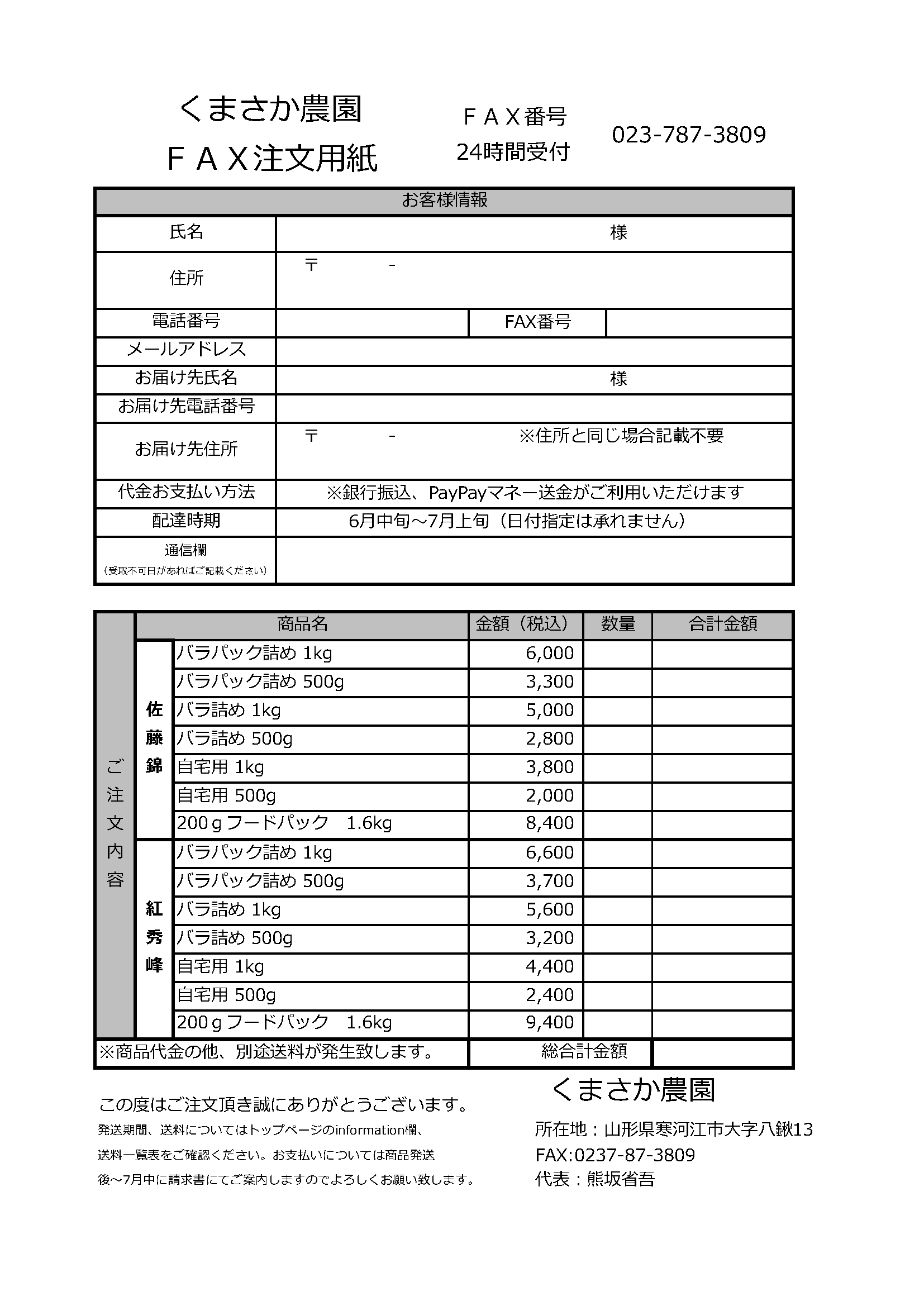 当農園ではFAXでのご注文も受付しております。